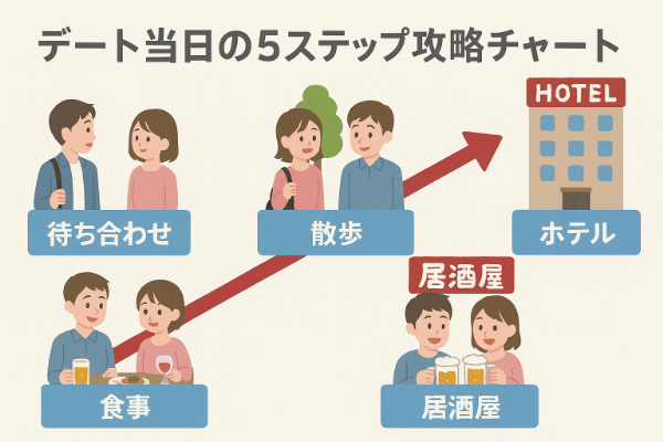 メッセージや合流直後は、誠実さと安心感を与えて警戒心を解くことに専念してください。そして、お酒や深い会話でスイッチが入ったタイミングを見逃さず、「休憩しよう」「もっと一緒にいたい」と堂々とホテルへエスコートしましょう。その一歩踏出す勇気が、成功と失敗を分ける境界線です。