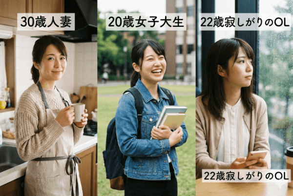| 属性に合わせた会話 | 大学生にはノリ、人妻には特別感など、役を演じ分けている |