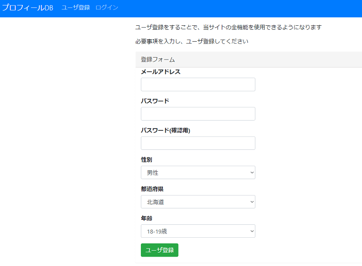 プロフィールDBの登録方法